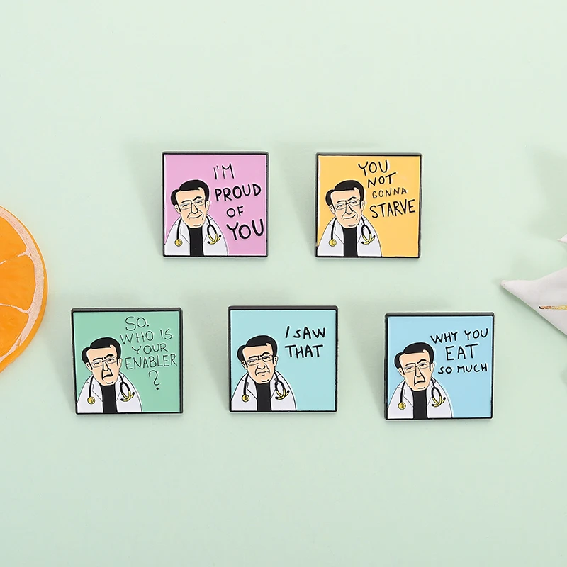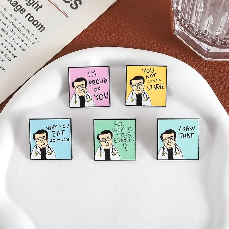 Funny Dr. Now Quotes Enamel Pins You Not Gonna Starve Why You Eat So Much I'm Proud of You Brooches Lapel Badge Jewelry Gifts