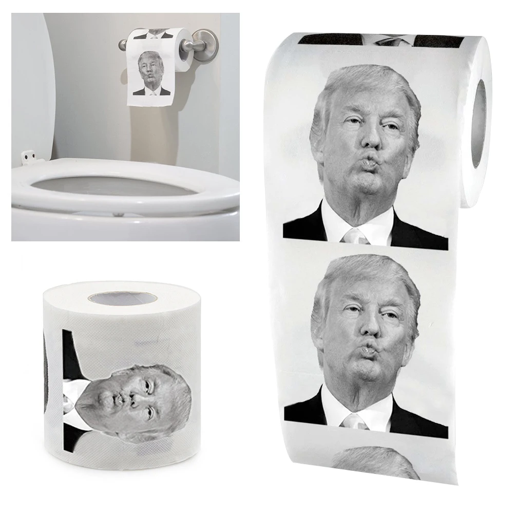 1-10 Rolls Donald Trump Roll Tissue Joke Fun Paper Tissue Gag Non-fading Nontoxic Dustless Prank Creative Bathroom Toilet Tissue