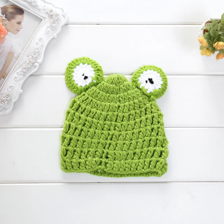 Frog Hat Autumn Winter Knitted Crochet Photography Hat Props Pictures Accessories