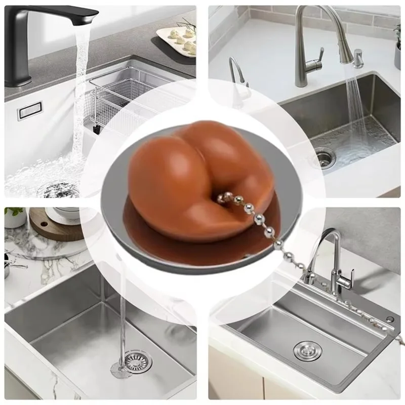A98E-New Simulation Kitchen Sink Strainer Stopper With Chain Bathroom Floor Drain Cover Kitchen Decor Universal